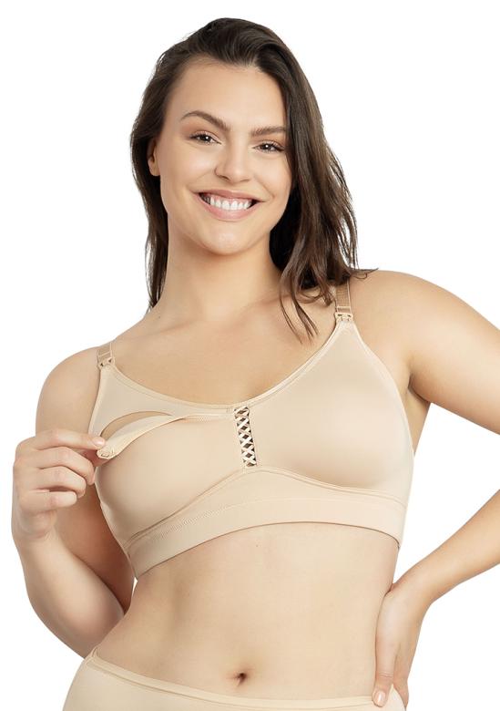 Dámská kojící podprsenka značky Parfait. Nová kojící podprsenka z kolekce ERIKA je maximálně pohodlná i pro ty, které mají větší poprsí. Podprsenka je bezkosticová, mírně vystužená. Má širší postranní výstuž, takže podprsenka Vám perfektně sedne. spodní část podprsenky drží našitá širší guma, která dobře přilne k obvodu. Zapínání má na tři pozice ve čtyřech řadách. Ramínka jsou pevně přišitá a dá se regulovat jejich délka. Dámská podprsenka má kolem horní části lesklé lemování. Uprostřed podprsenky je zd…