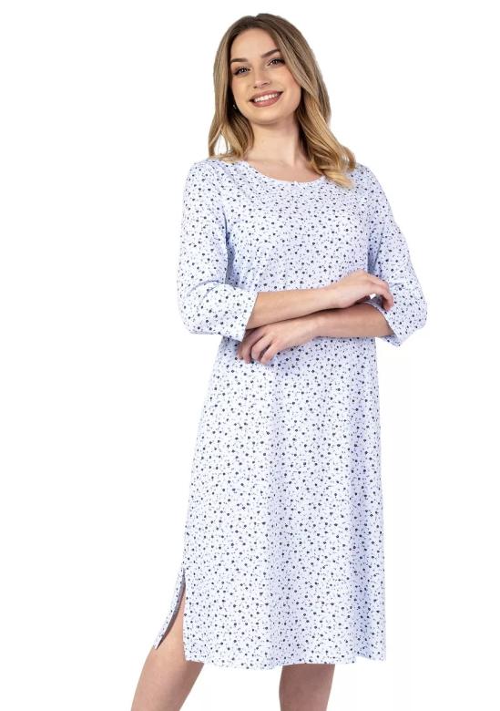 Dámská noční košile 137/42 REGINA přináší ideální kombinaci pohodlí a stylu pro každou ženu. Je ušita z prvotřídního 100% bavlněného úpletu, který je prodyšný a příjemný na dotek, což zaručuje klidný a nerušený spánek.Košile má kulatý výstřih zdobený malou mašličkou, který dodává jemný a ženský vzhled. Tříčtvrteční rukávy jsou praktické pro celoroční využití, zatímco decentní vzor potisku působí lehce a svěže.Prostorný střih a drobný rozparek na straně umožňují příjemný pohyb během odpočinku.Materiál: 10…