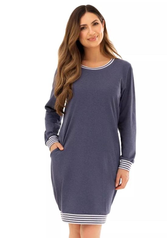 Dámská noční košile 159/53 značky REGINA je ztělesněním pohodlí a elegance pro každou ženu, která si potrpí na kvalitní spánek i styl. Sytě modrá barva v kombinaci s bílými detaily na lemu, manžetách a spodním okraji vytváří decentní kontrast, který působí svěže a moderně. Volnější střih s délkou ke kolenům poskytuje volnost pohybu i příjemný pocit lehkosti po celý večer. Měkký materiál ze 100% bavlny hladí pokožku a zajišťuje maximální prodyšnost – ideální volba nejen do ložnice, ale také pro chvíle dom…