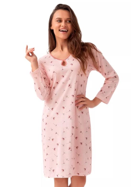 Dámská noční košile 279/51 značky LUNA představuje dokonalou kombinaci elegance a pohodlí pro každodenní domácí pohodu. Světle hnědý odstín s květinovým vzorem působí velmi žensky a dodává pocit lehkosti při každém nošení. Kulatý výstřih s decentním průstřihem vytváří zajímavý detail, který zůstává vkusný i praktický. Dlouhé rukávy zahřejí během chladnějších nocí, zatímco volnější střih zajišťuje maximální komfort bez omezení pohybu. Materiál je příjemně měkký na dotek a díky své prodyšnosti se postará o…
