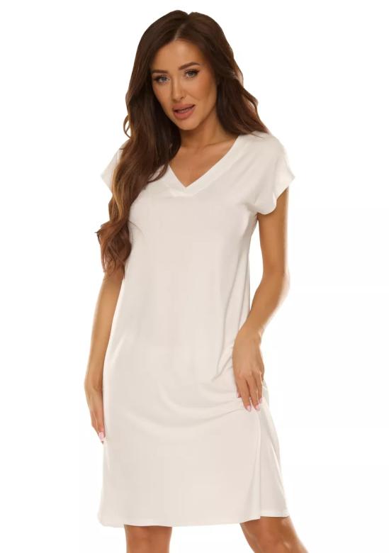 Tato noční košile vyniká véčkovým výstřihem a krátkým rukávem, které podtrhují její jednoduchý a elegantní střih.