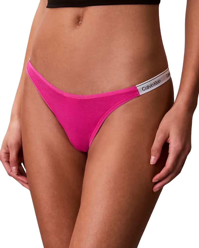 Tanga jsou bavlněná a po bocích s efektní gumou s nápisy brandu Calvin Klein.