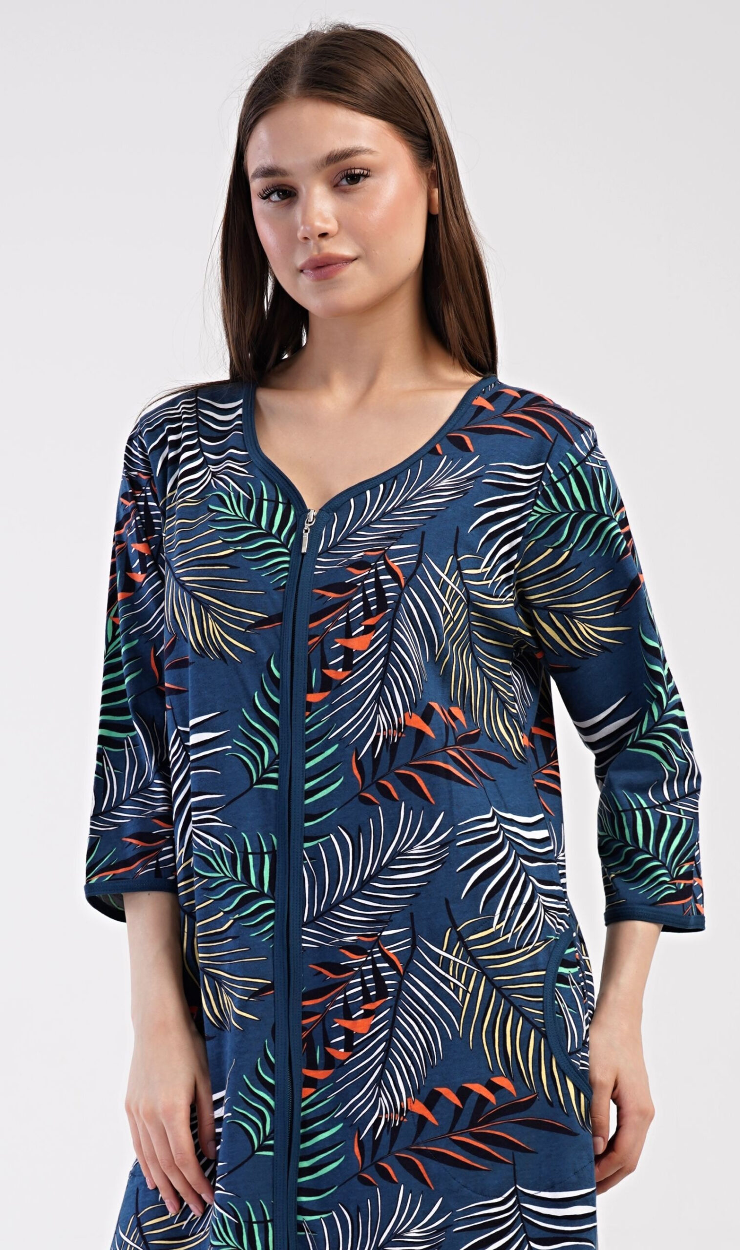 Pohodlné bavlněné dámské domácí šaty s tříčtvrtečním rukávem Barbara.