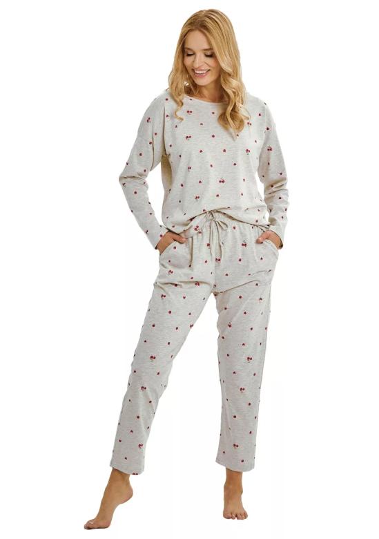 dámské pyžamo Adele 3430 značky TARO přináší do Vašeho domova spojení pohodlí a elegantního stylu. Měkký materiál s jemným květinovým vzorem na světle šedém podkladu vytváří příjemnou atmosféru pro chvíle odpočinku i klidný spánek. Horní díl s dlouhými rukávy a kulatým výstřihem nabízí volnost pohybu a příjemně obepíná postavu, zatímco dlouhé kalhoty s elastickým pasem a praktickou šňůrkou zajistí maximální komfort po celý večer. Díky pečlivému zpracování a kvalitnímu složení je tento komplet ideální vol…