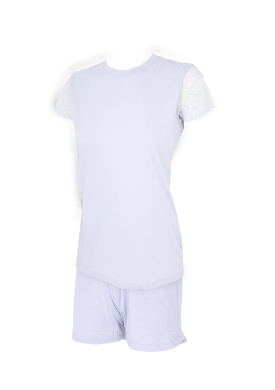 dámské pyžamo italské značky Cotonella. Pyžámko se skládá z topu s krátkým rukávem, který je kombinovaný s jemnou kraječkou. Pyžamové šortky jsou na gumu a jsou bez potisku. Materiálové složení: 50% bavlna 50% modal