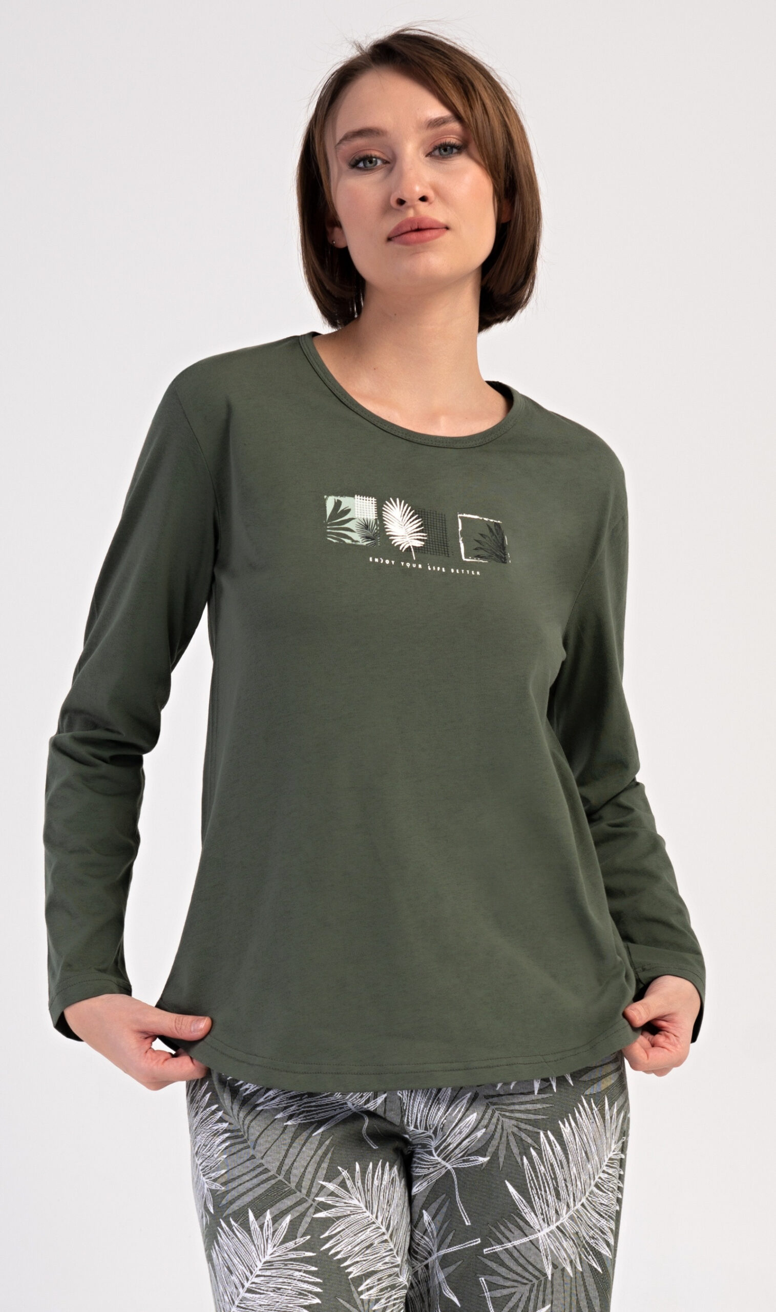 Módní smaragdové barvy dámské pyžamo s dlouhým rukávem Barbora.