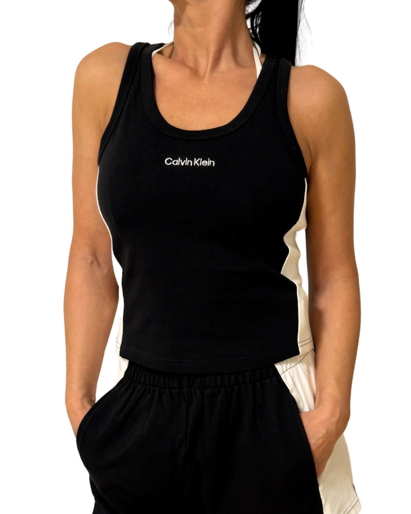 sportovní pohodlné bavlněné dámské tílko Calvin Klein v černo-bílé kombinaci.