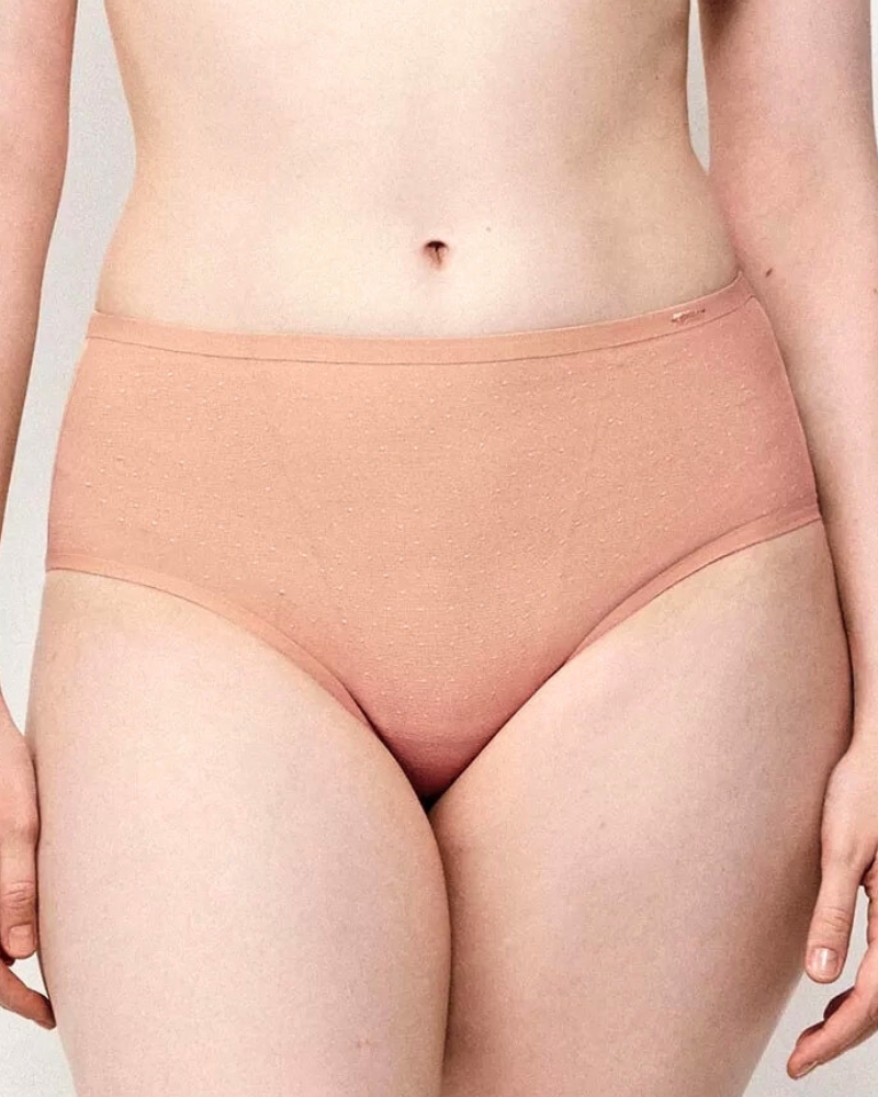 Kalhotky mají vnitřní část tělovou a vnější část je jemný elastický tělový tyl s puntíčky.