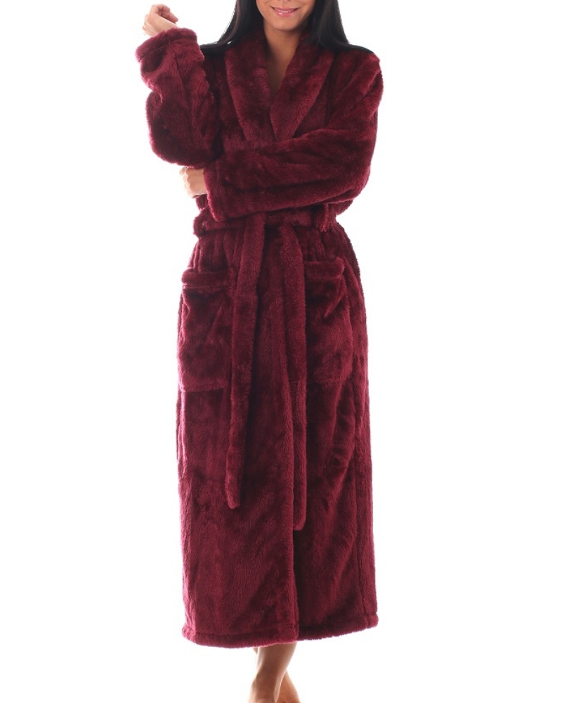 Dámský župan se nabízí v barvě vínové.