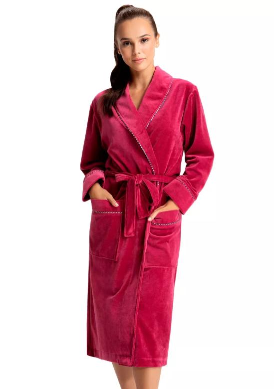 Elegantní dámský župan 361/22 LUNA v zářivé růžové barvě vás obklopí hřejivým pohodlím a luxusním dojmem. Tento župan je vyroben z kvalitního materiálu, který kombinuje 82% bavlny a 18% polyesteru, což zaručuje měkkost a dlouhou životnost. Hebký na dotek a zároveň praktický díky šálovému límci a zavazování v pase, které snadno přizpůsobí střih vaší postavě. Dvoumístné kapsy jsou ideální pro uložení drobností nebo pro ohřátí rukou během chladných večerů. Dekorativní prošití dodává županu osobitý a stylový…