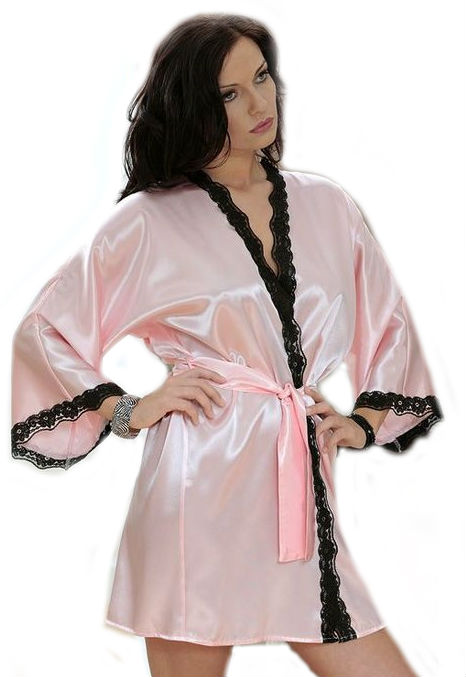 Dámský župan je zdobený hezkou černou krajkou.