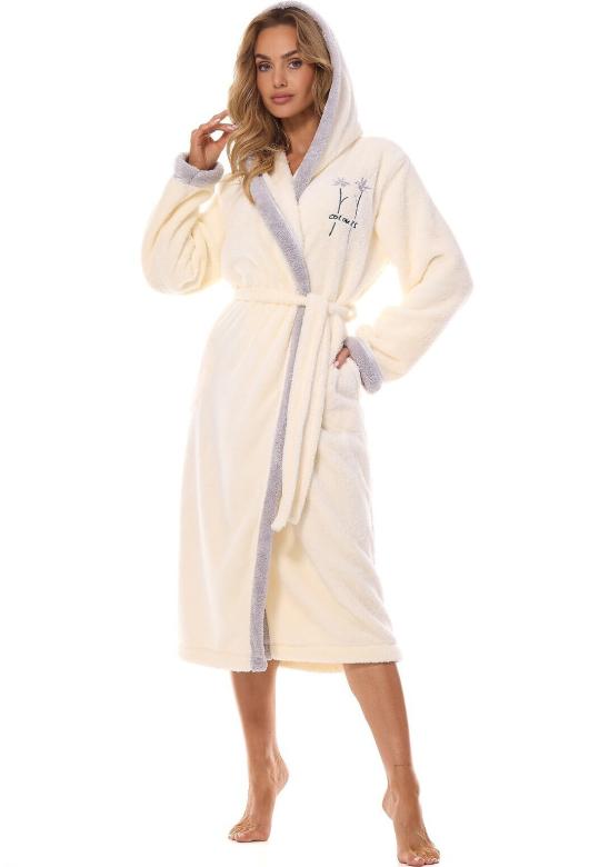dámský župan s kapucí značky LandL. Župan je dlouhý pod kolena. Na bocích jsou zapuštěné kapsy. Župan lze okolo pasu uvázat páskem. Župan je velmi příjemný na dotek. Materiálové složení: 100% polyester